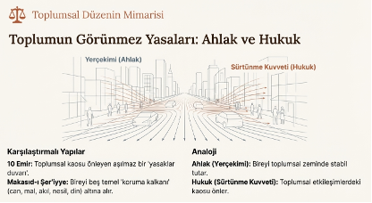 Kutsal metinler, adaleti sağlamak için normatif yapılar inşa ederler. Yahudi-Hristiyan geleneğinin çekirdeği olan "10 Emir", toplumsal kaosu önleyen aşılmaz bir "yasaklar duvarı" örerken; İslam hukukunun temelini oluşturan "Makasıd-ı Şer’iyye" (can, mal, akıl, nesil ve dinin korunması), bireyin varlığını beş temel koruma kalkanı altına alır. (Çorbacı, 2024)